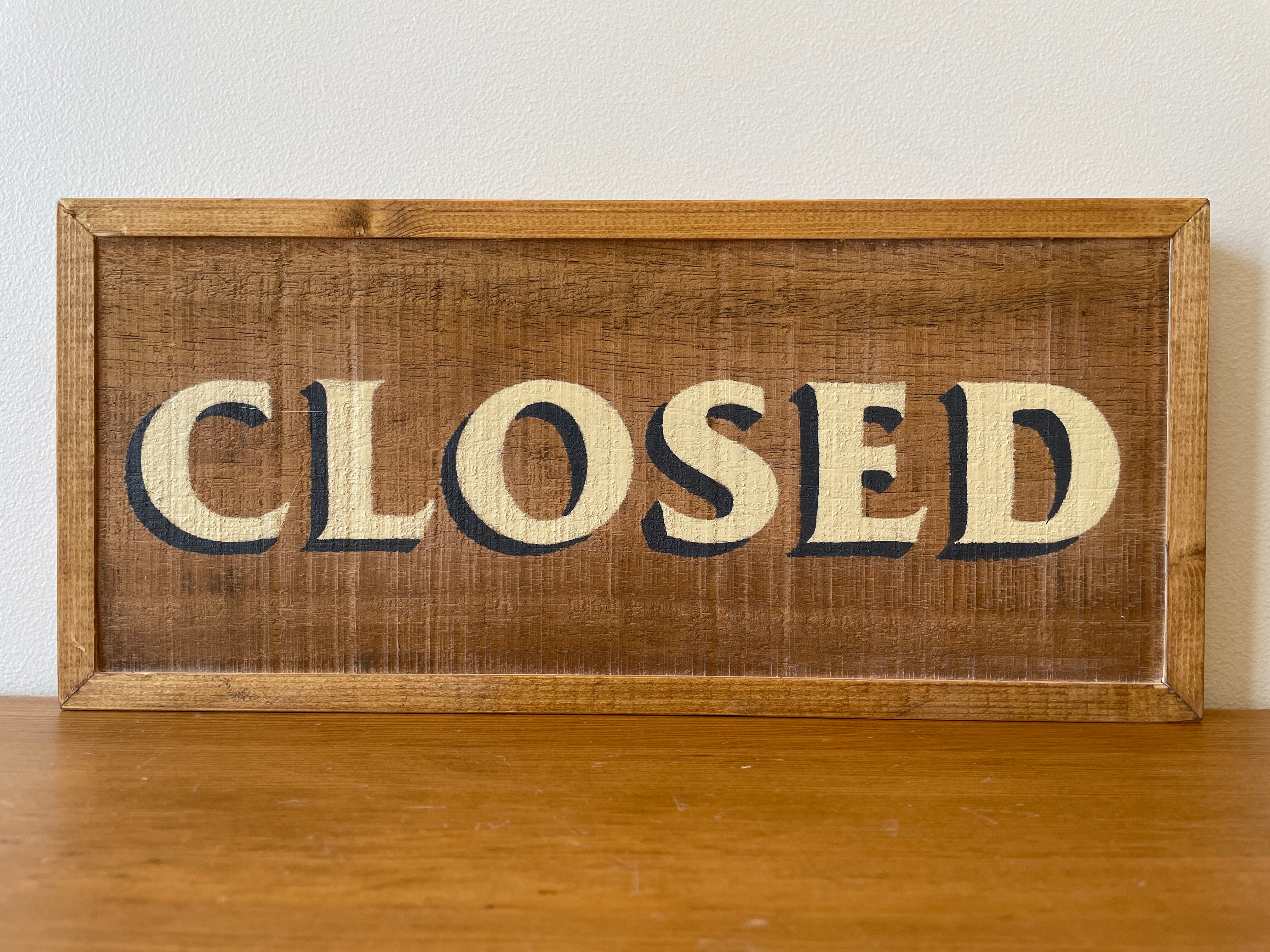 「OPEN / CLOSED」のサインをエナメル塗料で施した一点物の看板です。