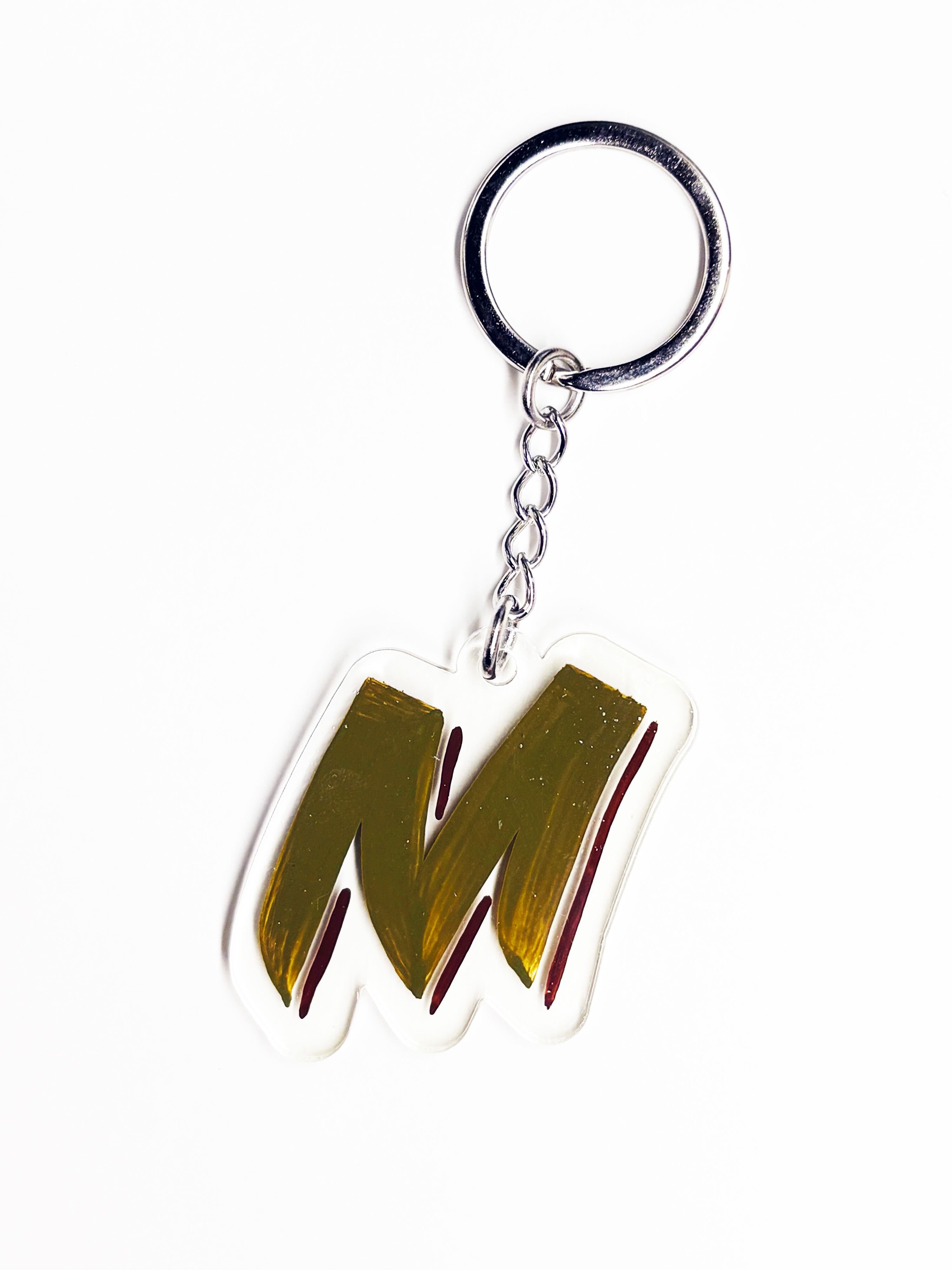 Acrylic Key Ring "M" Olive / Brown