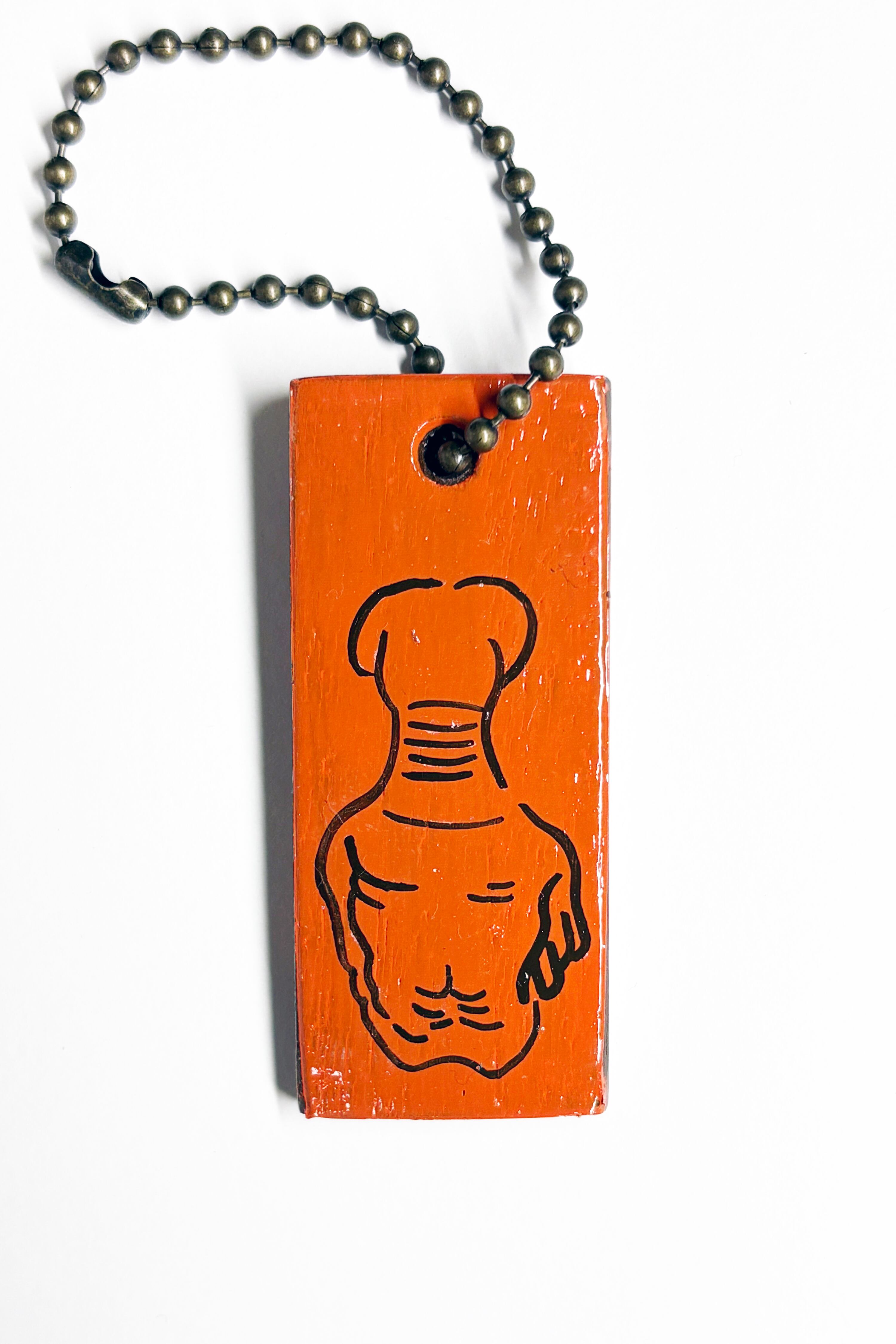 エナメル塗料で文字やイラストを施しているキーチェーンです。